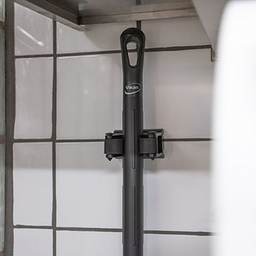 Jednostruki zidni nosač za prihvat jednom komada pribora. S gumicom. Ukupna dužina 8 cm. Može prihvatiti sav pribor promjera od 28 do 33mm.